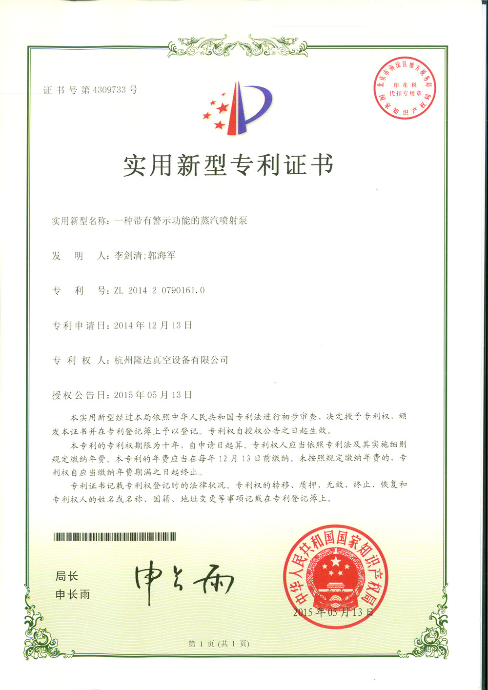 一種琮有警示功能的蒸汽噴射泵專利